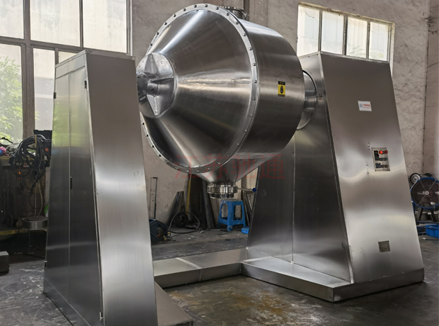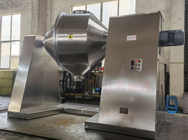 (三)雙錐筒進料口采用快開旋開閥,出料口采用大口徑90°旋閥,使用特別方便。