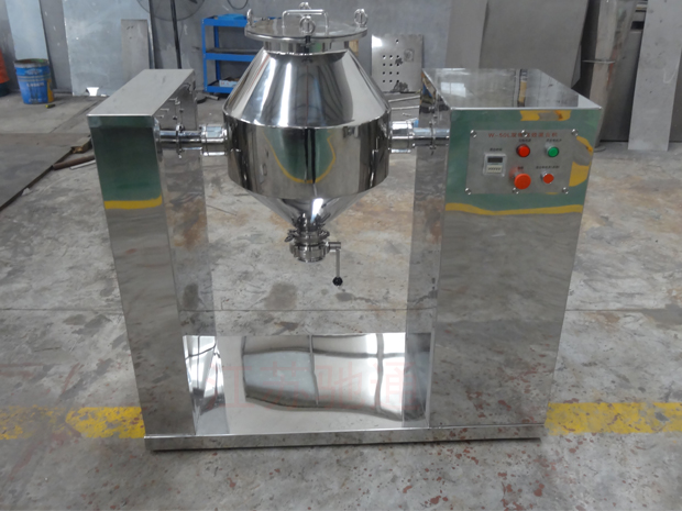 W型雙錐混合機(jī)由雙錐筒、機(jī)械密封、機(jī)架、減速傳動、攪拌葉片等構(gòu)成。該機(jī)的工作過程是:把需混合的幾種物料通過真空輸送或人工加料投放到雙錐體內(nèi),上好筒蓋,開起設(shè)備,雙錐筒及攪拌葉片同時(shí)轉(zhuǎn)動,旋轉(zhuǎn)的雙錐筒使筒體內(nèi)物料產(chǎn)生紊亂翻滾混合,高速旋轉(zhuǎn)的攪拌葉片打碎結(jié)團(tuán)物料,使物料在筒體內(nèi)快速混合。W型雙錐混料機(jī)工作過程無死角,無沉積,可使混合的物料快速達(dá)到均勻一致的效果。